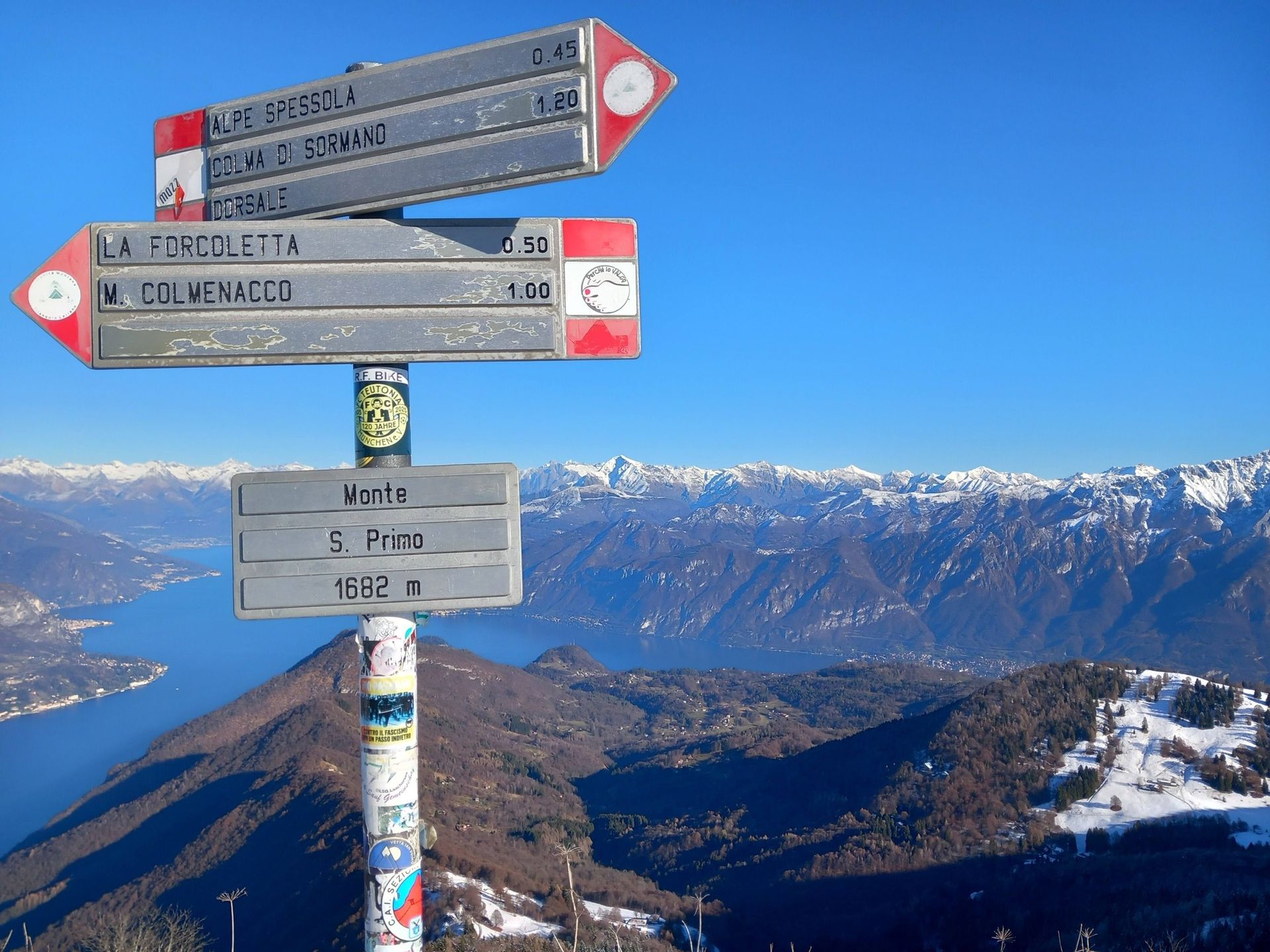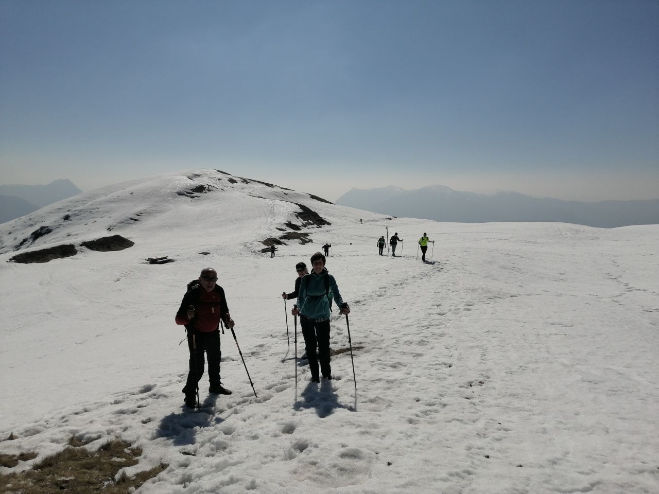 Uscita di sezione al Monte San Primo partendo dalla Colma di Sormano. Tanta gente dai vari versanti. Neve presente ghiacciata al mattino nel tratto in ombra poi piu morbida, ramponcini non indispensabili. Giornata spaziale con vista dagli Appennini alle Alpi Monviso compreso. Ottima scelta anche per le temperature gradevoli.