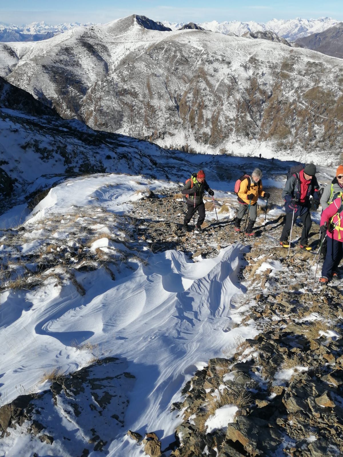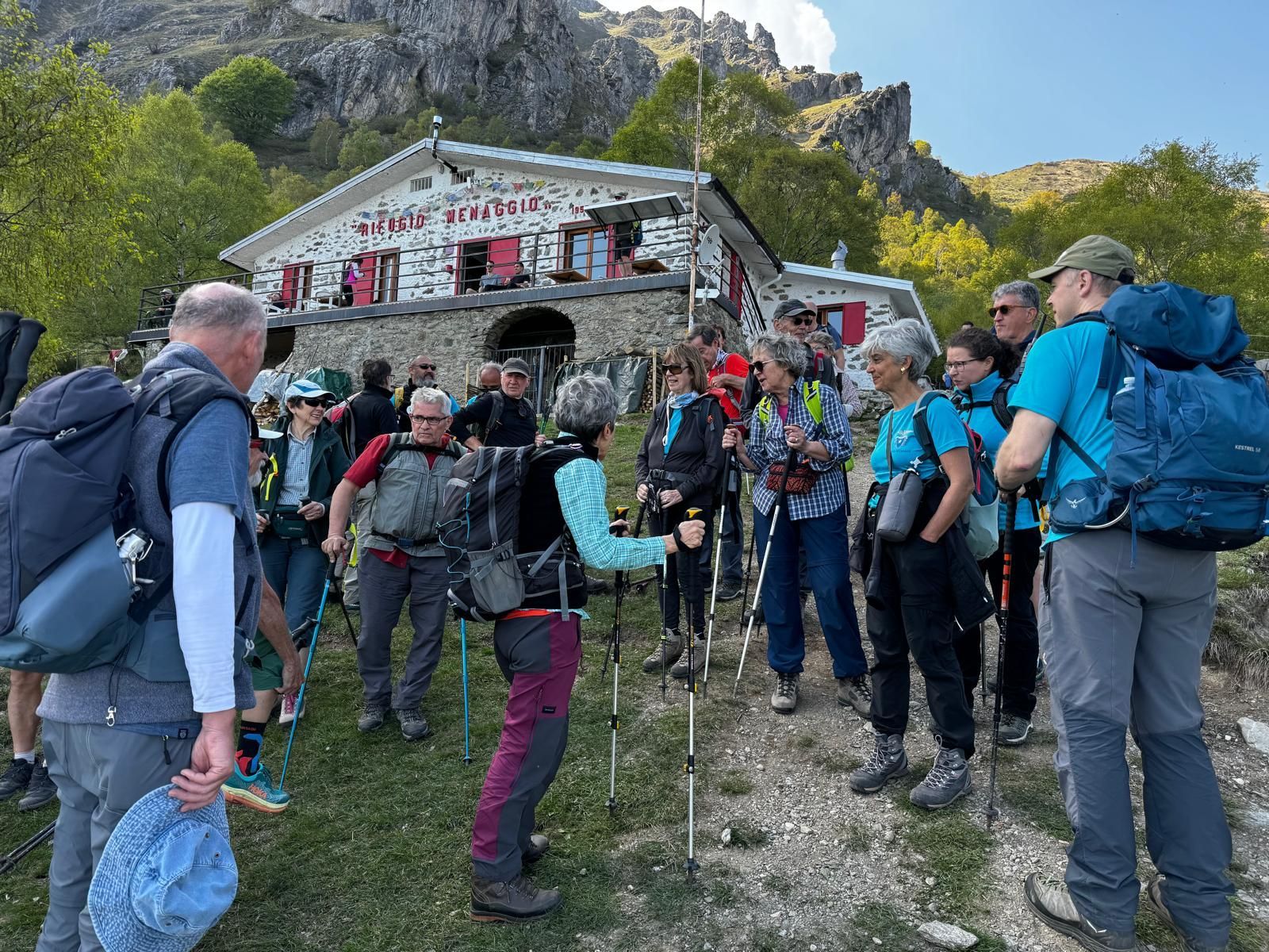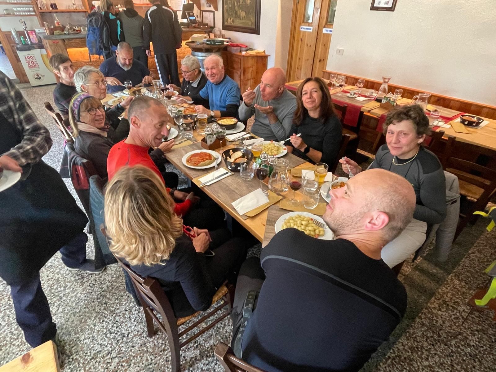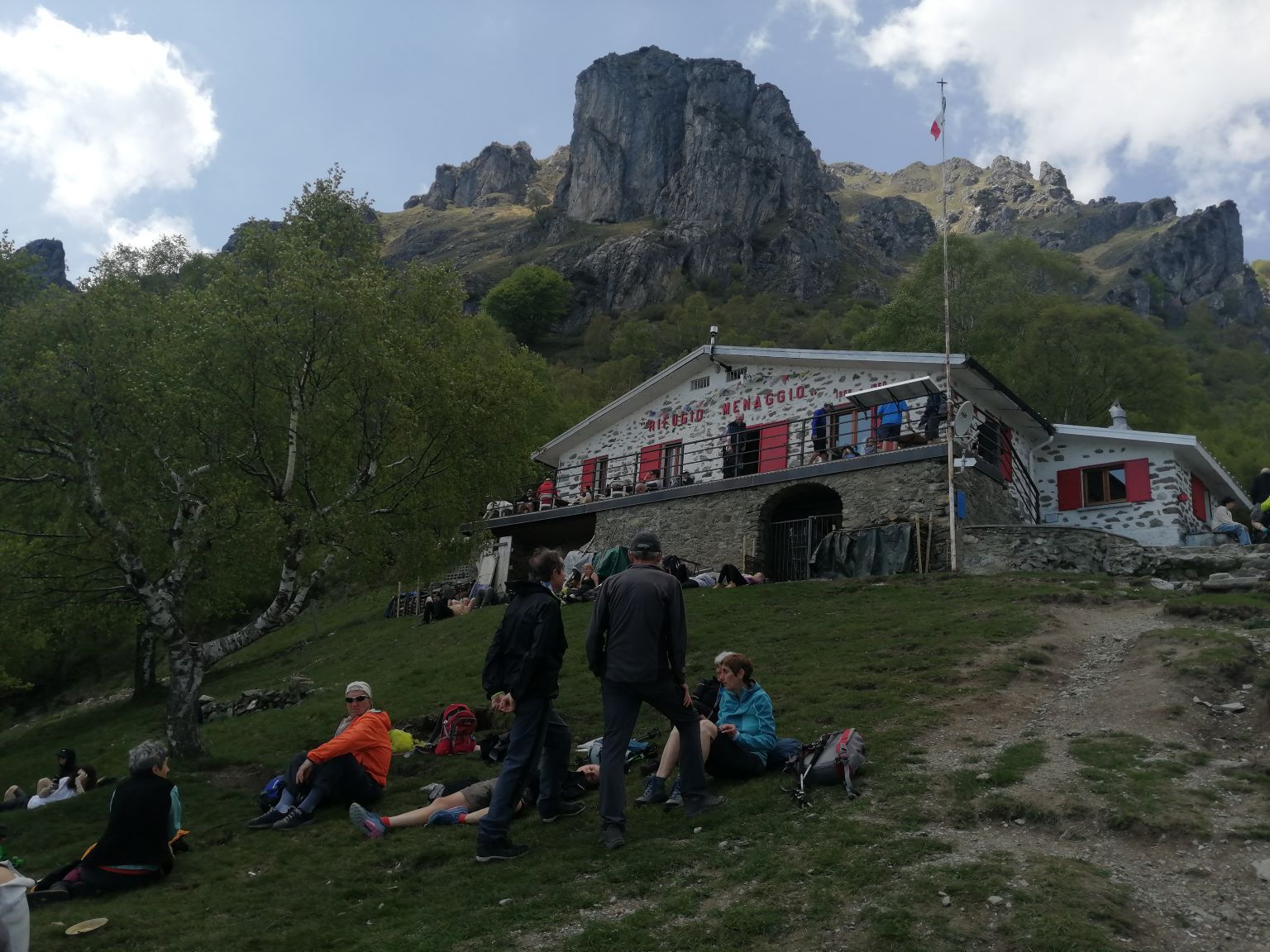 Ai piani si trovano alcuni rifugi che offrono conforto agli escursionisti e da qui si raggiunge la cima della piramide con due facili sentieri che il gruppo ha percorso salendo dal lato ovest e scendendo dalla cresta nord. Poi pizzoccheri o torta al rifugio Casari.