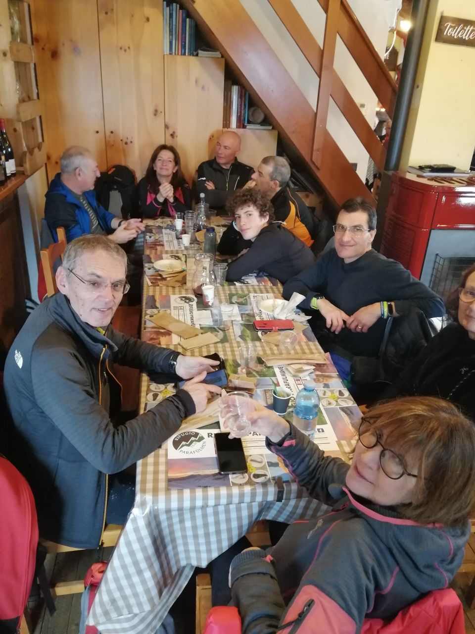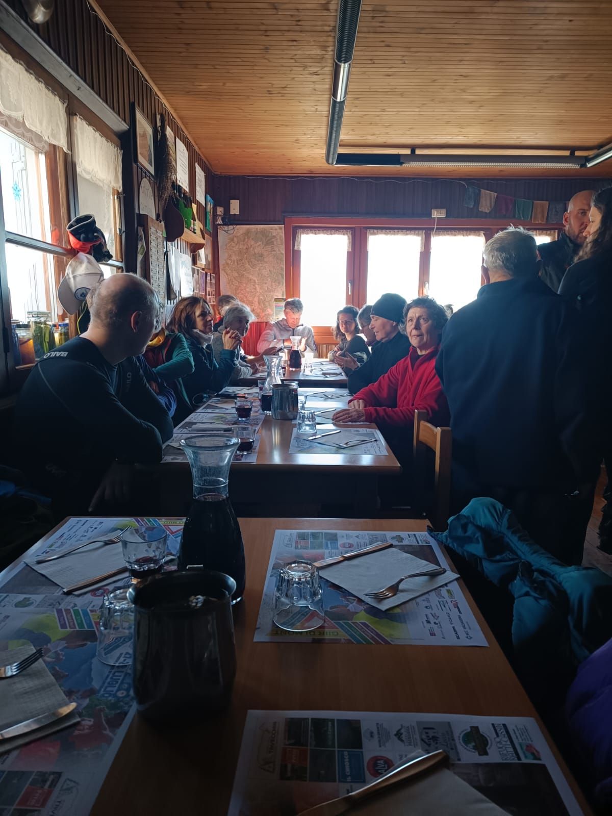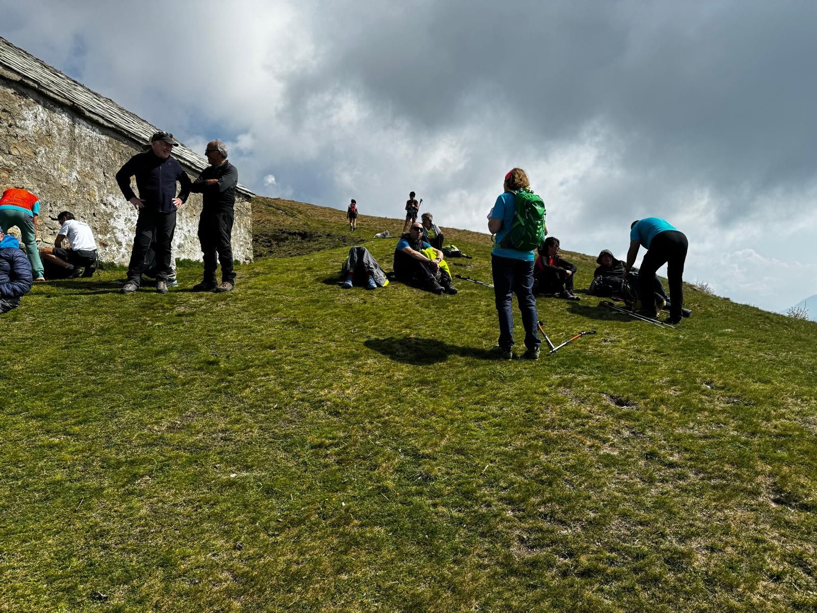 Di fronte ad un panorama eccezionale sulle montagne della zona tra cui il Velina, il Cima Sasso e il Pedum, su un prato verdissimo, illuminato da un caldo sole, gli escursionisti hanno consumato, in un momento di piacevole convivialità, il pranzo al sacco.
