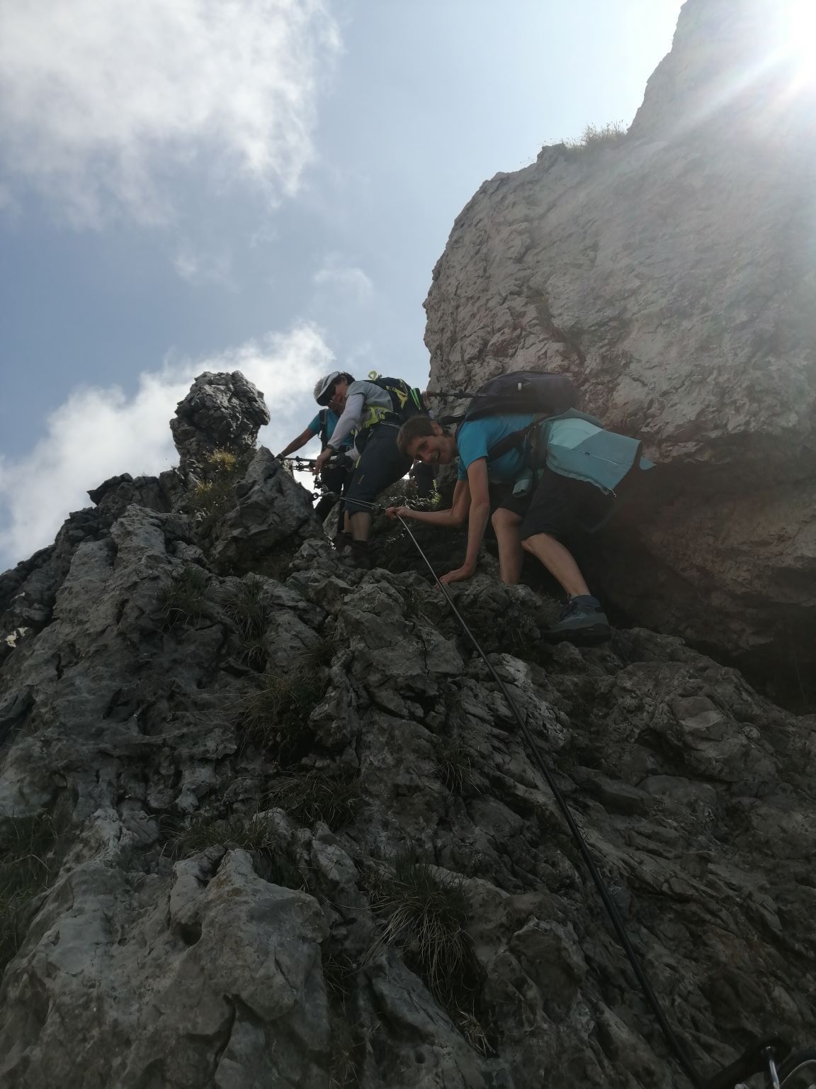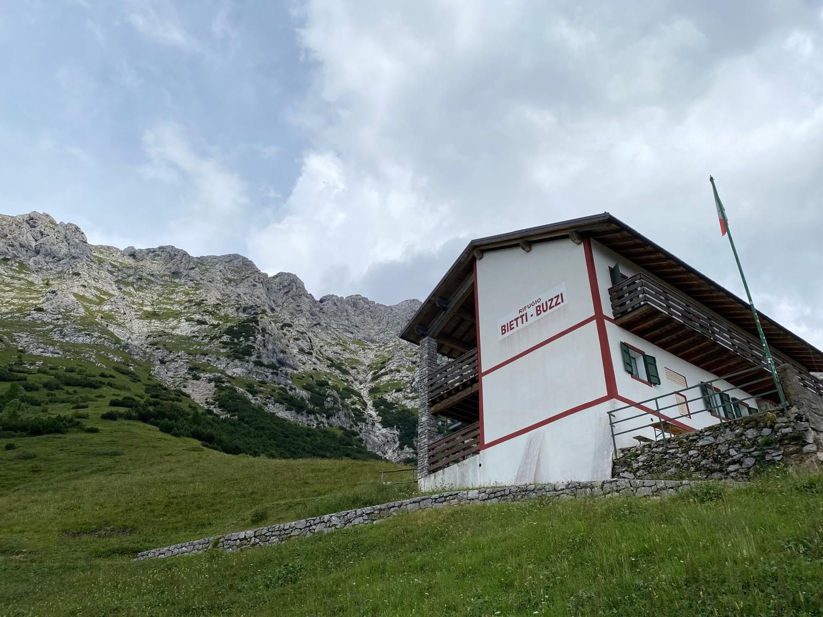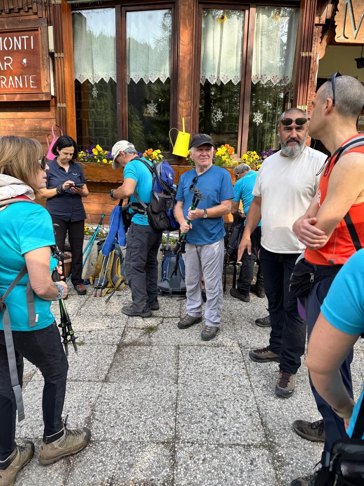 Una improvvisa pioggerella ha invitato ad una veloce discesa , difficoltosa nella parte iniziale, verso il rifugio Zamboni. Qui un meritato momento di riposo con torte, birre e il calore del sole ritornato prepotente.