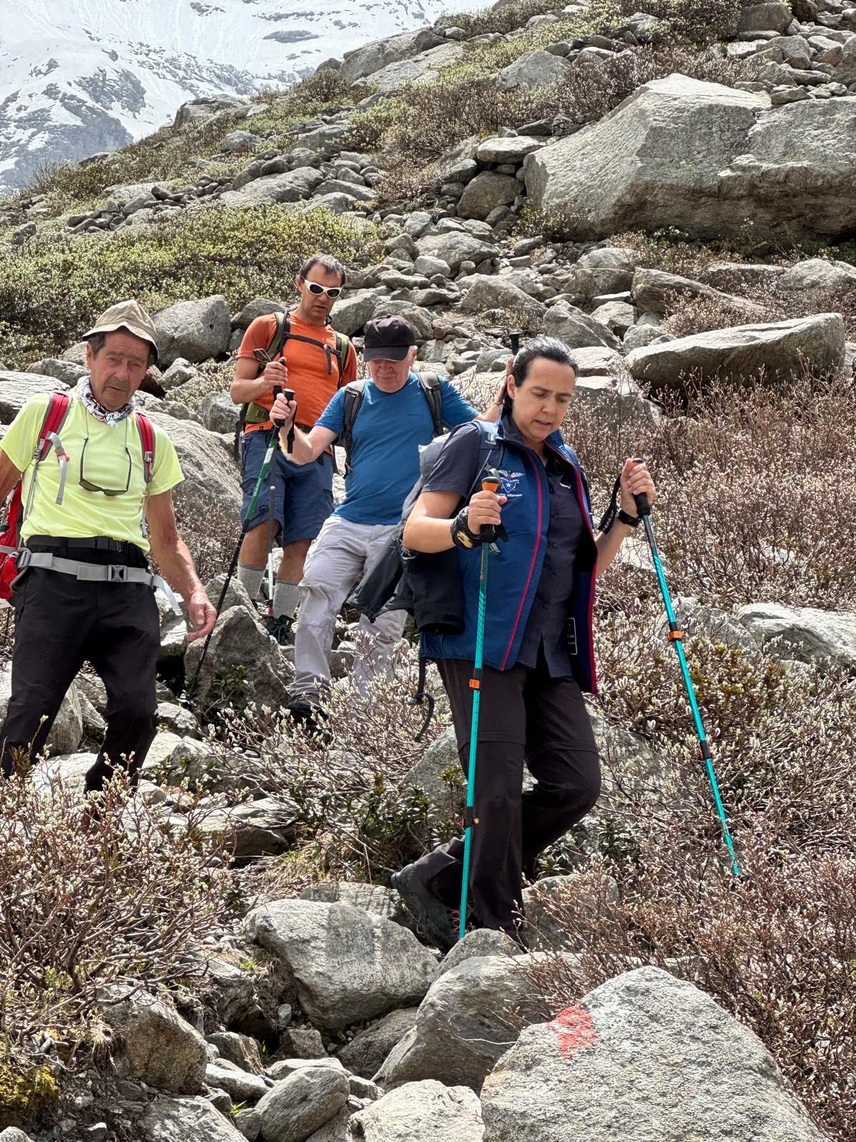 La parte più bella del trekking è partita proprio dal ghiacciaio del Belvedere, un ghiacciaio "nero", completamente ricoperto da detriti rocciosi che si allungano fino a fondersi con le pareti verticali del Monte Rosa.