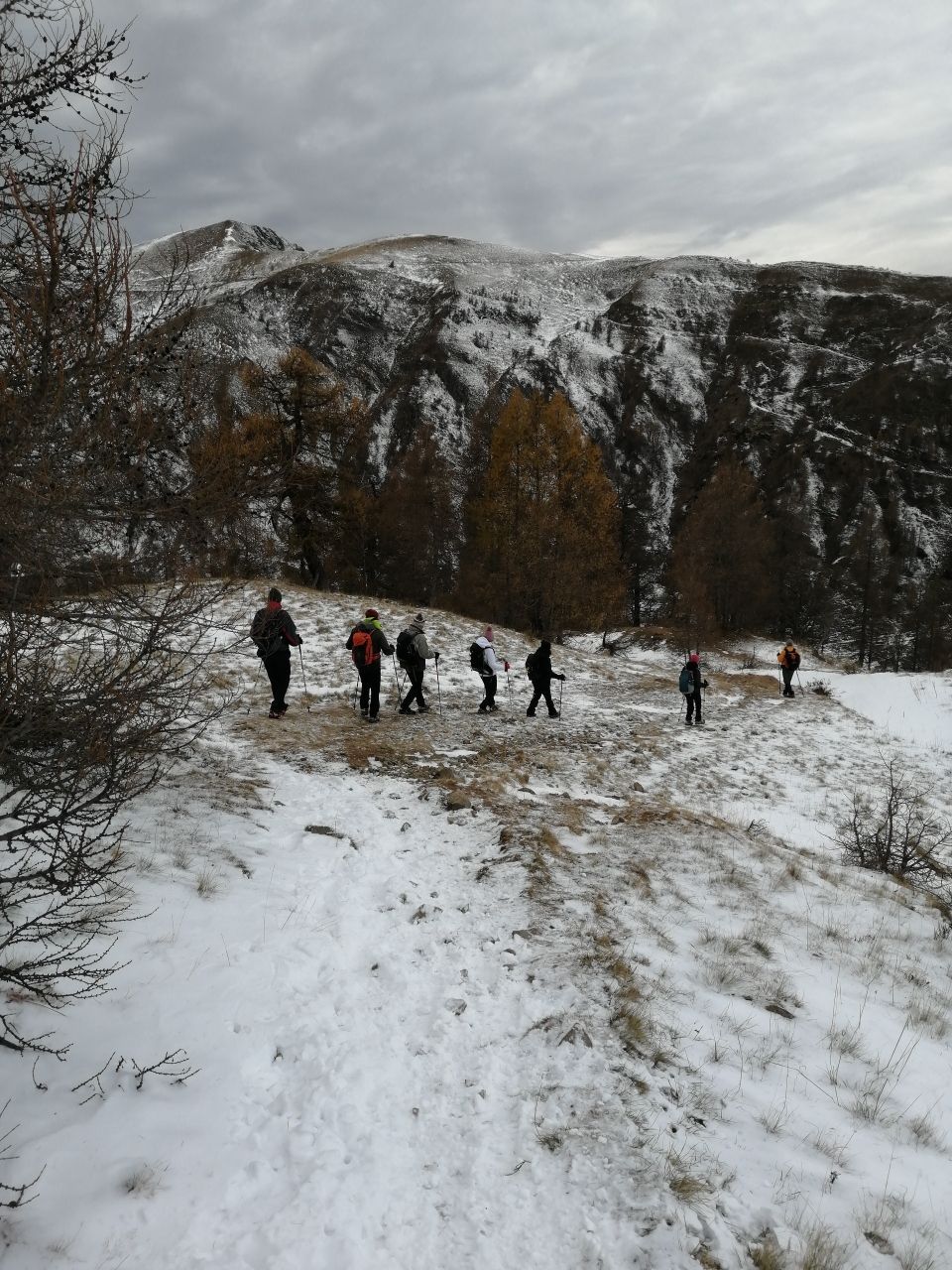 Posteggiate le macchine a Pecetto (mt.1365), il gruppo, calzati gli scarponi, zaino in spalla,si è incamminato per la meta, con una parte che ha preferito sfruttare la seggiovia fino alla stazione del Belvedere (mt.1914), per risparmiare energie, con l'obiettivo di raggiungere anche il lago delle Locce.