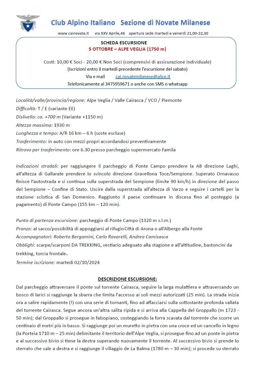 Escursione all'Alpe Veglia e al lago Bianco per il gruppo escursionistico del Cai Novate Milanese, 21 soci si sono avventurati nella bellissima piana dell'Alpe Veglia e alcuni hanno raggiunto il lago Bianco e il Pian d'Erbioi ai suoi 2265 metri. Giornata favolosa leggermente ventilata con il panorama dominato dalla parete nord del Monte Leone imbiancata dalla prima neve di stagione.