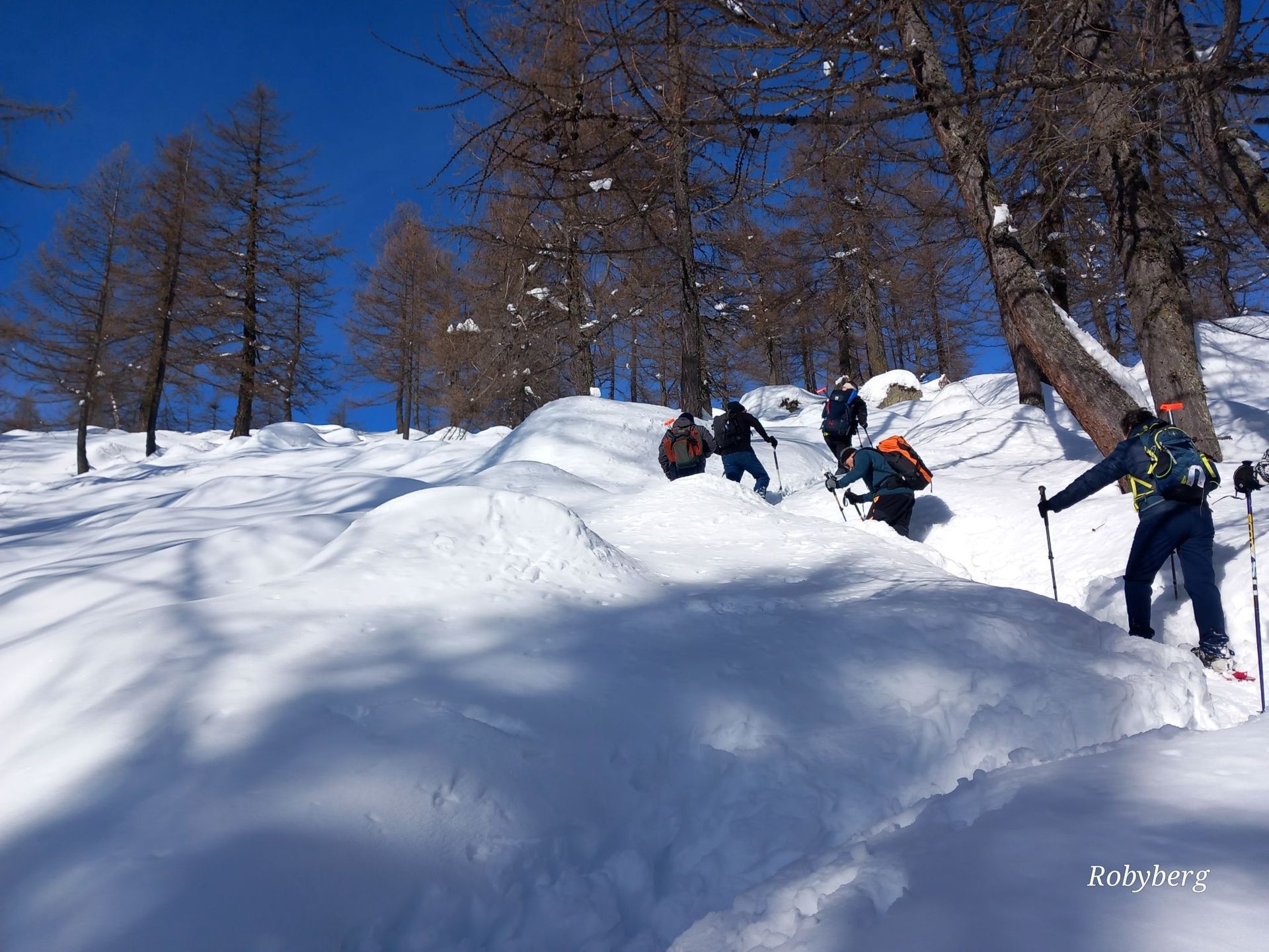 Sabato alpino per la sezione che è salita in val Bognanco per la prima ciaspolata della stagione invernale. Da San Bernardo, ultima località della Val Bognanco, dove si lascia l'auto e inizia il percorso nel bosco che con tratti pianeggianti e brevi salite conduce fino al rifugio Gattascosa, sbucando al sole all'altezza del lago di Ragozza completamente ghiacciato e ricoperto da quasi mezzo metro di neve caduta nei giorni precedenti. Giunto al rifugio il gruppo ha gustato un ottimo pranzo a base di polenta vari tipi di carni con dolce finale. A questo punto mancava la salita al Passo del Monscera al confine svizzero che è stata affrontata con calma e a cui è seguita la discesa con percorso ad anello dal lato opposto della valle. Il gruppo, durante il tragitto, ha effettuato una esercitazione di utilizzo con ARTVA per la ricerca di persone travolte da valanga, importante per tutti i frequentatori di ambiente innevato non solo per l'obbligo di legge di avere l'apparecchiatura al seguito ma determinante avere la capacità di utilizzalo in caso di necessità per la salvaguardia dei compagni di gita e di altre persone. Il gruppo ha scoperto un ambiente incontaminato con tanta neve recente e frequentato da chi vuole rimanere a contatto con la natura. In totale i partecipanti haano percorso un itinerario di circa 11 km con 500 metri di dislivello fino ai 2100 metri del passo. Prossima uscita il 14 febbraio al passo Branchino in Valcanale nella bergamasca.